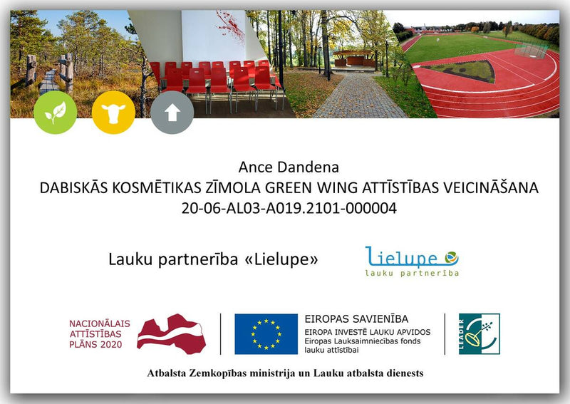 2020. gada vasarā realizēts LEADER projekts „Dabiskās kosmētikas zīmola Green Wing attīstības veicināšana” ar mērķi paaugstināt zīmola Green Wing konkurētspēju tirgū, izstrādājot jaunus produktus, palielinot ražošanas jaudas un veicinot atpazīstamību.