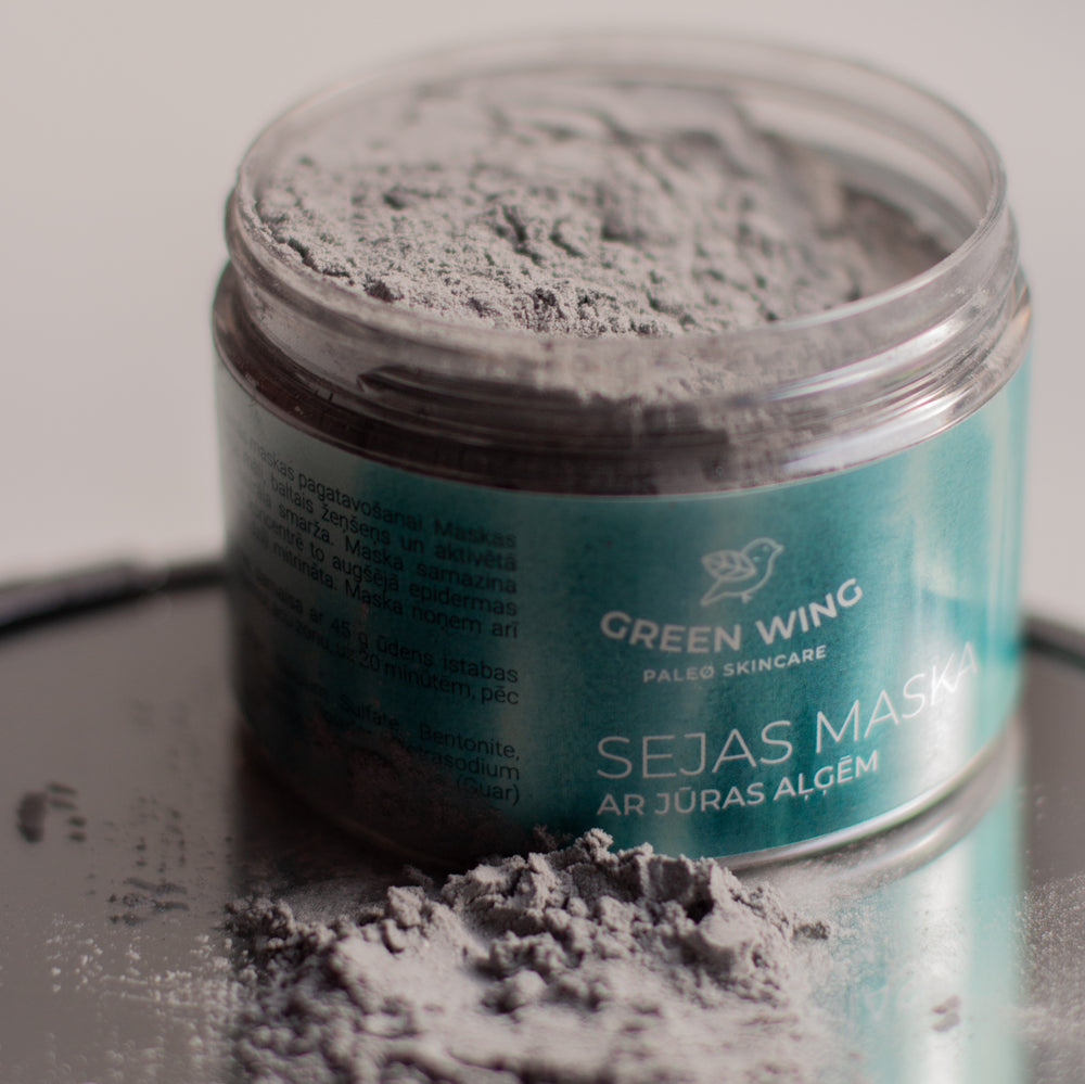 Cik gan patīkami ir ieelpot jūras gaisu un izbaudīt, ka vējš glāsta tavu seju! Sejas maska ar jūras aļģēm ļaus tev kaut nedaudz sajusties kā jūras gaisa apskautai. Mūsu piedāvājumā ir sausais maisījums nolobāmas sejas maskas pagatavošanai. Šīs maskas sastāvā ir hlorellas aļģe, kam piemīt ādas toni uzlabojošas īpašības, baltie māli, kas attīra un samazina poras, kā arī baltais žeņšeņs un aktivētā ogle. Maskai ir melna krāsa un neitrāla smarža. Tā samazina dabisko ūdens zudumu ādā un koncentrē to augšējā epidermas slānī – āda tiek nekavējoties dziļi mitrināta. Maska noņem arī 84% atmirušo ādas daļiņu. Pēc šīs maskas lietošanas varēsi izbaudīt gludu un maigu sejas ādu. 60 g iepakojumā.